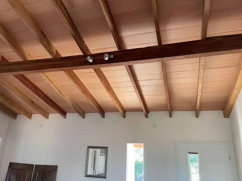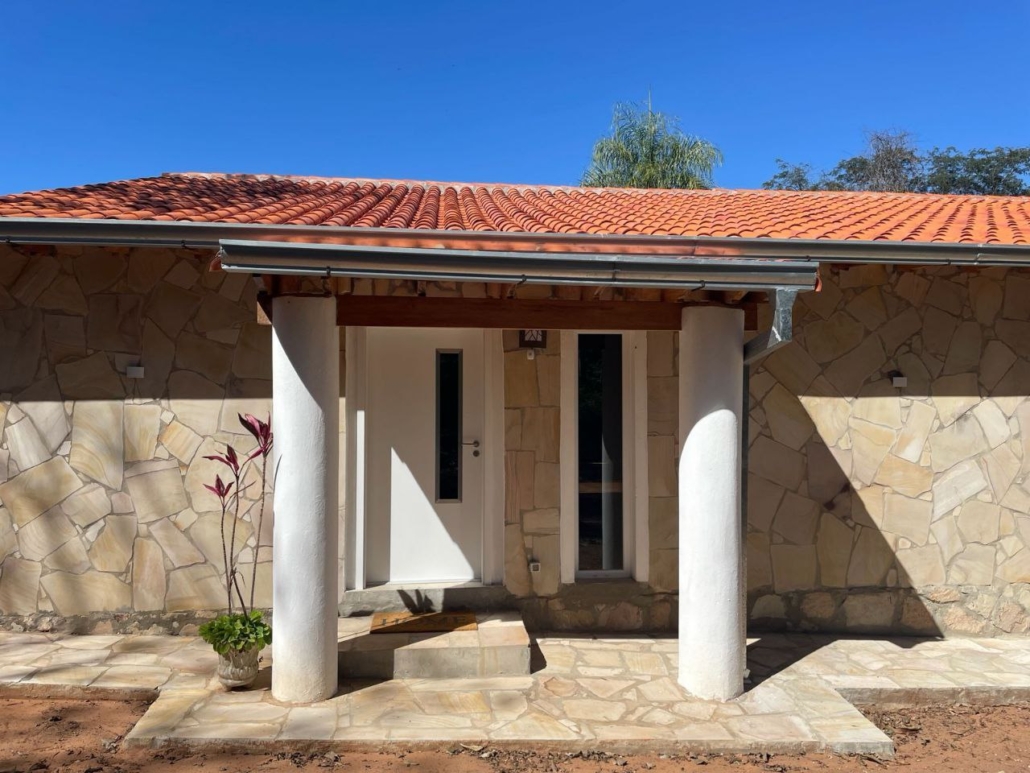 Das Haus wurde in massiver Bauweise errichtet und überzeugt mit robusten 25 cm starken Wänden, Kunststofffenstern mit Mosquiteros, teils Doppelverglasung sowie Sicherheitsglas. Die moderne Architektur mit Doppelpultdach und einer Raumhöhe von 4,5 Metern schafft ein großzügiges, helles Raumklima.