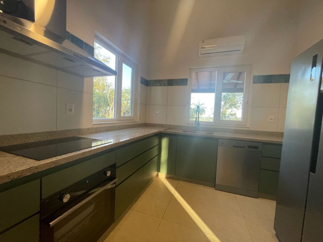 Zur Ausstattung gehören 3 Klimaanlagen, Deckenventilatoren sowie eine maßgefertigte Einbauküche und Einbauschrank.